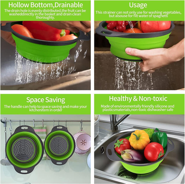 ๐ข๐ญ๐ฌ ๐๐จ๐ฌ๐ญ ๐๐ข๐ง๐ค ๐๐ข๐ณ๐๐ฌ & ๐๐ก๐๐ฉ๐๐ฌ โ This collapsible colander set includes two convenient sizes (8โ & 9.5โ), making it perfect for rinsing and draining fruits, vegetables,...