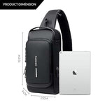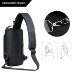 Crossbody Sling Bag – Waterproof Leather Chest Shoulder Backpack for Men & Women, Casual Travel Daypack with USB Charging Port, Design for Hiking & Everyday Use(Black)