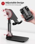 Foldable Cell Phone Stand for Desk – Portable Mobile Phone Holder for 3.5" - 7.9" Devices | Adjustable & Rotatable Stand for iPhone, iPad, Tablets, and Smartphones (Black)