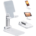 Foldable Cell Phone Stand for Desk – Portable Mobile Phone Holder for 3.5" - 7.9" Devices | Adjustable & Rotatable Stand for iPhone, iPad, Tablets, and Smartphones (White)